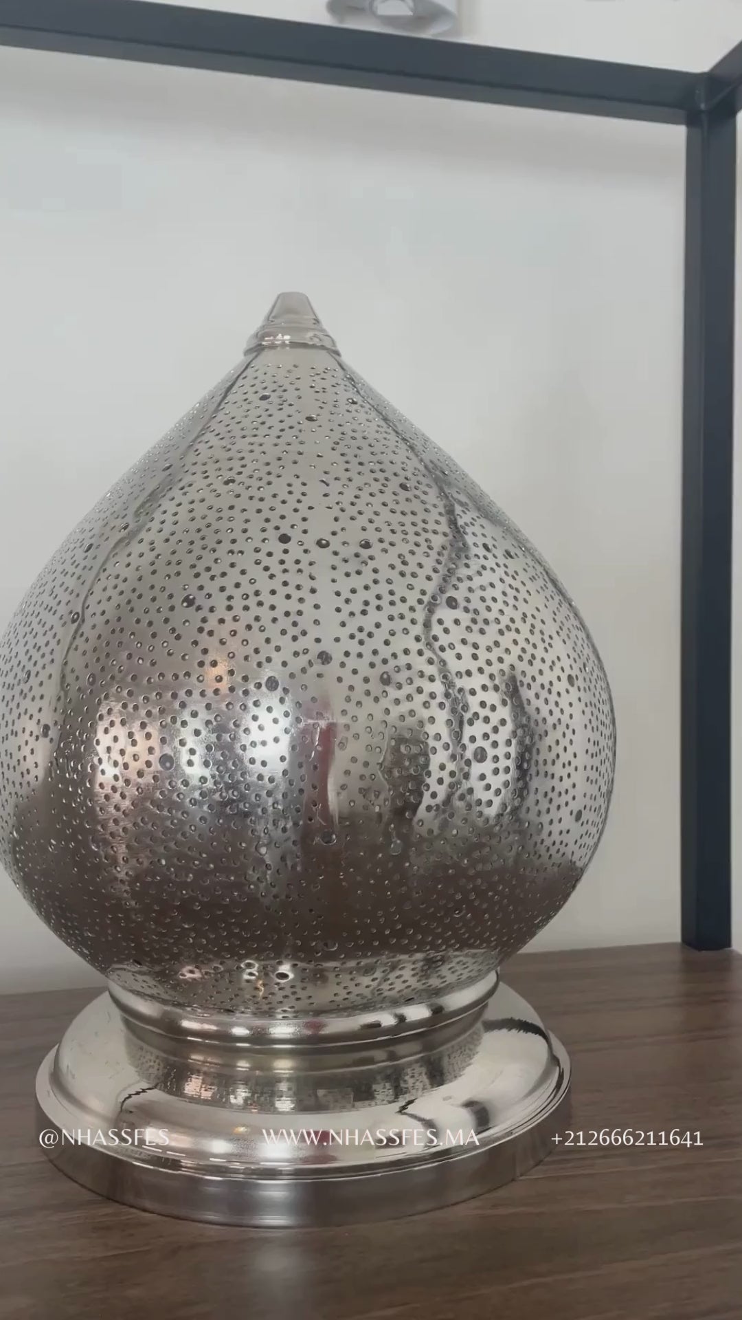 Der Stella- Lampenschirm ist ein einzigartiges Kunststück, handgefertigt von unseren talentierten marokkanischen Kunsthandwerkern. Dieser aus vernickeltem Messing gefertigte Lampenschirm zeichnet sich durch seine fein durchbrochenen Muster aus, die das Licht streuen und eine warme und elegante Atmosphäre schaffen. Mit einem Durchmesser von 24 cm und einer Höhe von 30 cm passt er sich perfekt an verschiedene Räume in Ihrem Interieur an. Dieses exklusive Design ist einzigartig bei Nhassfes und garantiert beispiellose Originalität und Qualität.